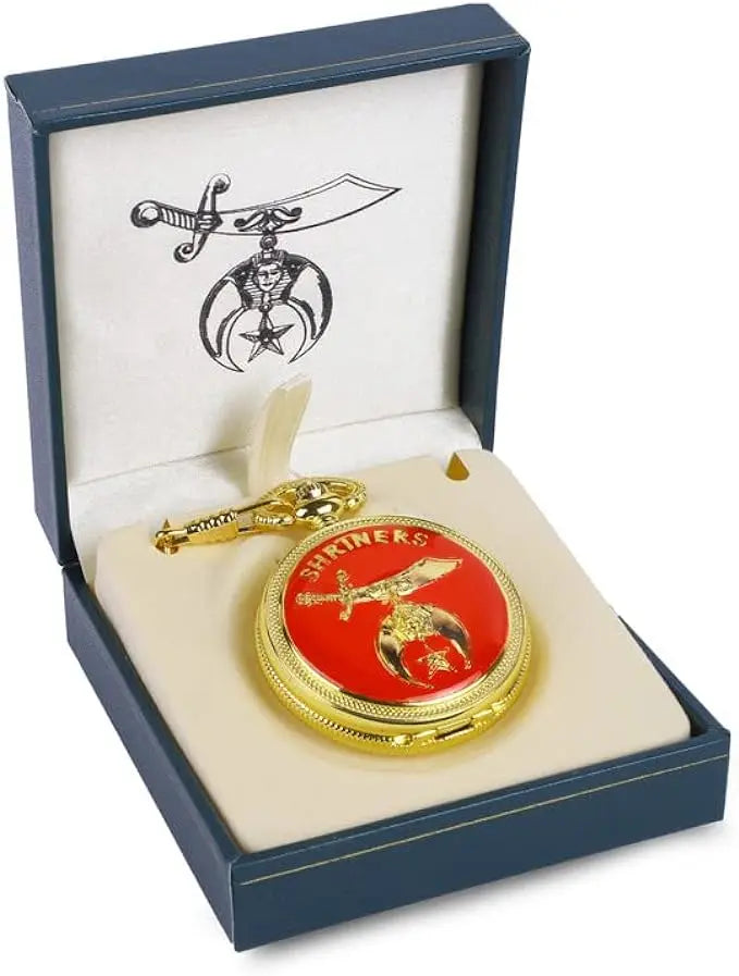 We have a curated collection of antique masonic pocket watches in gold. A few examples include Fire Dept. Truck Pocket Watch Gold, Eagle Antique Pocket Watch, Masonic Antique Compass/Square Pocket Watch, Shriner’s Red & Gold Pocket Watch, and more.
