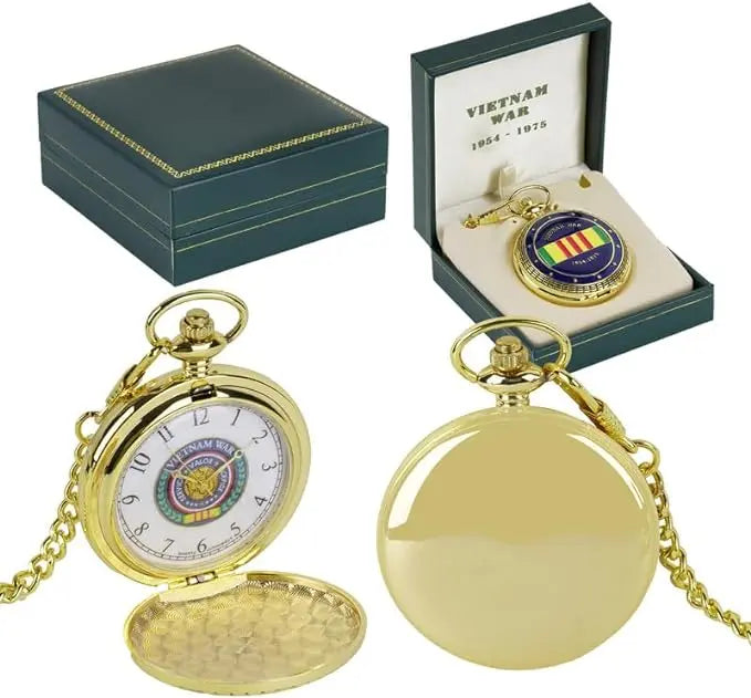 You can also find timeless pieces that depict the war times. A few examples include Vietnam war pocket watch, Operation Desert Storm Pocket Watch, Operation Iraqi Freedom Pocket Watch, Vietnam Memorial Soldiers Pocket Watch, And POW/MIA Vietnam War Pocket Watch. The last one features a message to pay a tribute to the soldiers of Vietnam war. The message says, “Memory of 58, 479 Brothers & Sisters Who Never Returned Vietnam War 1959-1875.”